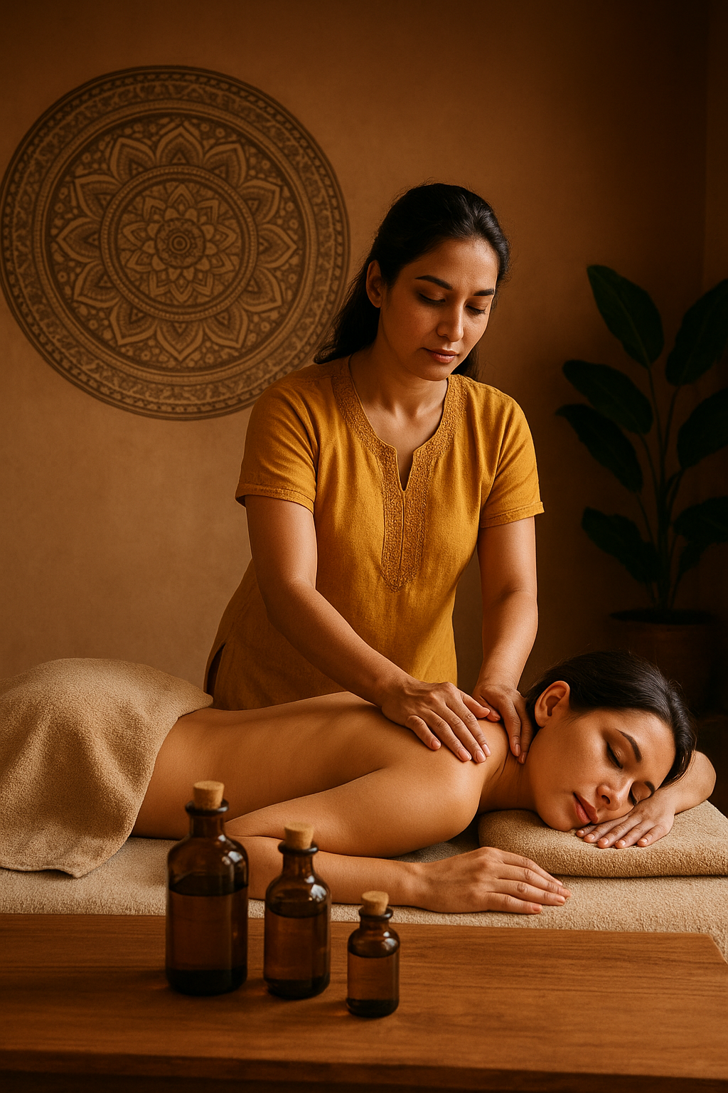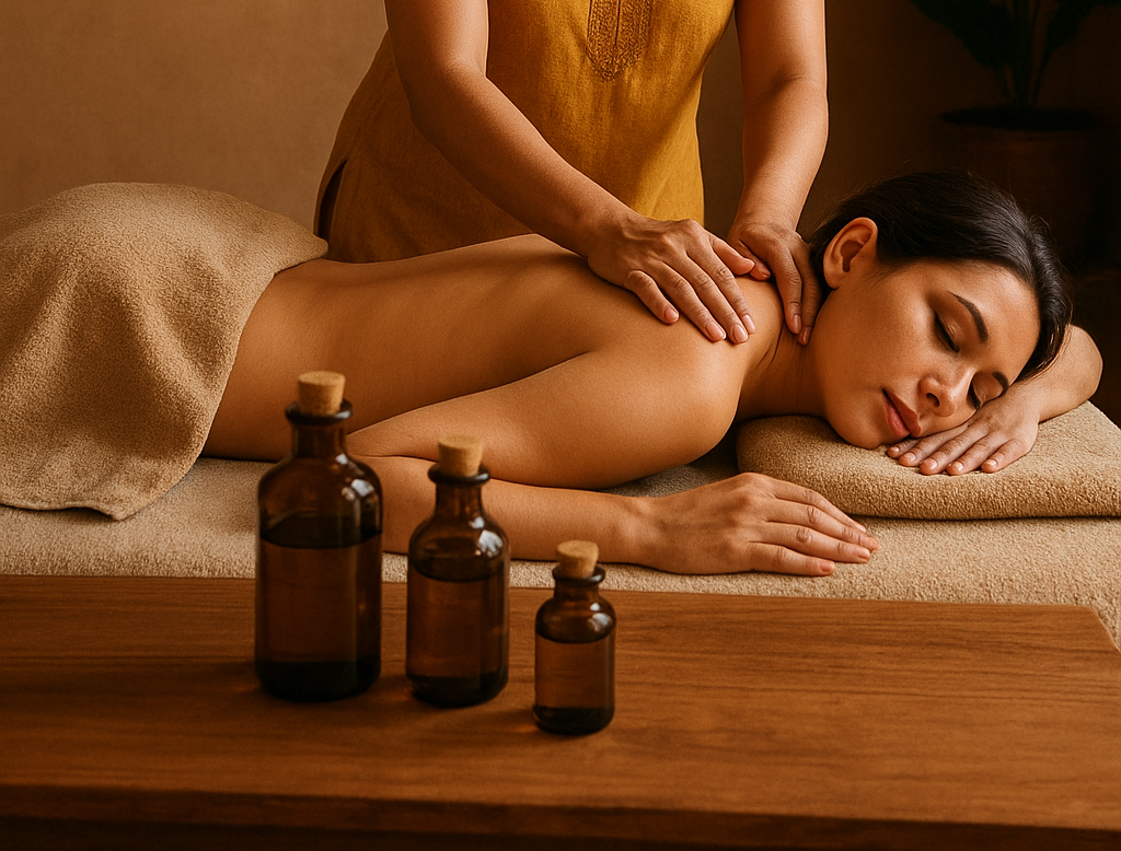 Mit warmen, nährenden Ölen und sanften Bewegungen löst die ayurvedische Massage Verspannungen, entgiftet den Körper, beruhigt den Geist und fördert tiefes Wohlbefinden.